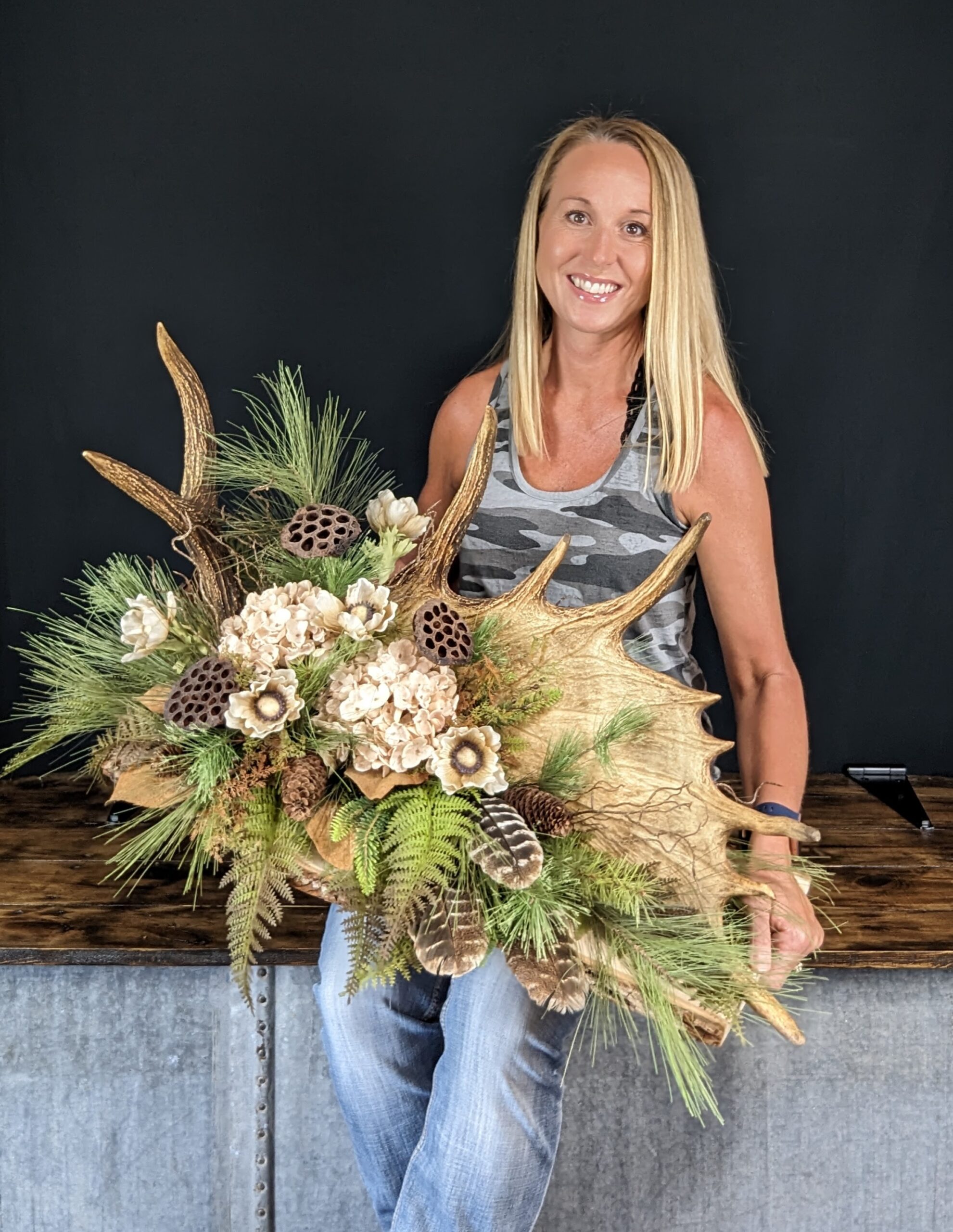 In our family owned shop, I take joy in creating stunning rustic arrangements and wreaths using high-quality artificial florals. Additionally, we offer artificial floral stems, bushes, and garlands for individuals who enjoy engaging in DIY projects. Our shop also includes a charming assortment of rustic home decor items such as hand painted signs and nature scenes, delectable products from War Eagle Mill, and exquisite candles from Reborn Candle Co.