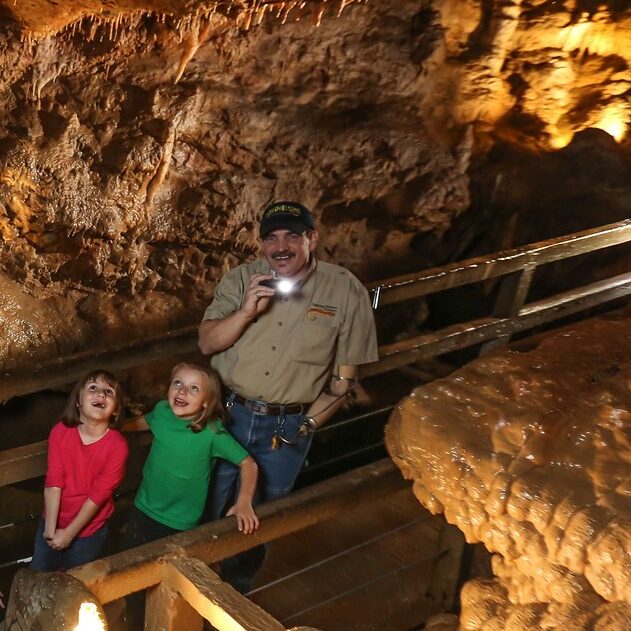 The cave is a welcome 63°F year-round. Explore Talking Rocks Cavern any season of the year; we are open daily! Above ground adventures include picnic areas, nature trails, lookout tower, SpeleoBox cave crawls, gemstone panning, a family games area, and Cave Country Mini-Golf!