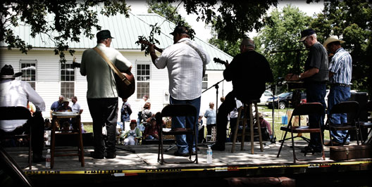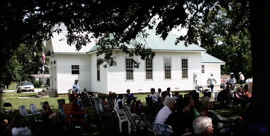 | Beneath the shade of a massive white oak, former students, family, musicians and local politicians gather. | ||||||||||||||||||||||||||||