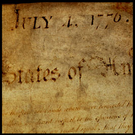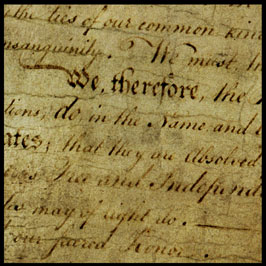 | DECLARATION OF INDEPENDENCE (July 4, 1776) (SECTION I) When in the Course of human events, it becomes necessary for one people to dissolve the political bands which have connected them with another, and to assume among the powers of the earth, the separate and equal station to which the Laws of Nature and of Natures God entitle them, a decent respect to the opinions of mankid requires that they should declare the causes which impel them to separation. (SECTION II) We hold these truths to be self-evident, that all men are created equal, that they are endowed by their Creator with certain unalienable Rights, that among these are Life, Liberty and the pursuit of Happiness. That to secure these rights, and when a government violates these rights, the people have the right to alter or abolish that government. (SECTION III) Such has been the patient sufferance of these Colonies; and such is now the necessity which constrains them to alter their former Systems of Government. The history of the present King of Great Britain is a history of repeated injuries and usurpations, all having in direct object the establishment of an absolute Tyranny over these States. To prove this, let Facts be submitted to a candid world.... (SECTION IV) Nor have We been wanting in attentions to our British brethren. We have warned them from time to time of attempts by their legislature to extend an unwarrantable jurisdiction over us. We have reminded them of the circumstances of our emigration and settlement here. We have appealed to their native justice and magnanimity, and we have conjured them by the ties or our common kindred to disavow these usurpations, which, would inevitably interrupt our connections and correspondence. They too have been deaf to the voice of justice and of consanguinity. We must, therefore, acquiesce in the necessity, which denounces our Separation, and hold them, as we hold the rest of mankind, Enemies in War, in Peace Friends. (SECTION V) We, therefore, the Representatives of the united States of America, in General Congress, Assembled, appealing to the Supreme Judge of the world for the rectitude of our intentions, do, in the Name, and by Authority of the good People of these Colonies, solemnly publish and declare, That these United Colonies are, and of Right ought to be Free and independent States; that they are Absolved from all Allegiance to the British Crown, and that all political connection between them and the State of Great Britain is and ought to be totally dissolved; and that as Free and Independent States, they have full Power to levy War, conclude Peace, contract Alliances, establish Commerce, and to do all other Acts and Things which Independent States may of right do. And for the purpose of this Declaration, with a firm reliance on the protection of divine Providence, we mutually pledge to each other our Lives, our Fortunes and our sacred Honor. |