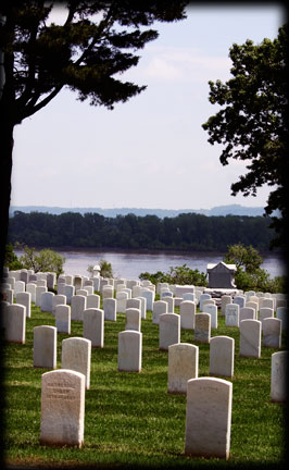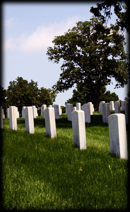 | IN FLANDERS FIELDS John McCrae, 1915 (FIRST STANZA) In Flanders fields the poppies blow Between the crosses, row on row, That mark our place; and in the sky The larks, still bravely singing, fly Scarce heard amid the guns below. (SECOND STANZA) We are the Dead. Short days ago We lived, felt dawn, saw sunset glow, Loved and were loved, and now we lie In Flanders fields. (THIRD STANZA) Take up our quarrel with the foe: To you from failing hands we throw The torch; be yours to hold it high. If we break faith with us who die We shall not sleep, though poppies grow In Flanders fields. _____ Back in the old days days when poetry was a school childs requisite and patriotism not an ethical debate the recitation of In Flanders Fields was a common part of Decoration Day and Veterans Day celebrations. The poem was written by John McCrae (b. 1872), a Canadian soldier, poet and physician. A field surgeon assigned to the French battlefields, McCrae would die of pneumonia on January 28, 1918. _____ The National Cemetery at Jefferson Barracks is pictured on this page. Established in 1826, the cemetery is on the far south side of St. Louis, high on a bluff overlooking the Mississppi River. Geographically, the Jefferson Barracks and National Cemetery mark the extreme north-eastern boundary of the Ozarks. _____ Jefferson Barracks & National Cemetery photo plates Photo credits: J. Heston. Location: St. Louis metropolitan area SOTO © Archive 05/27/09 _____ historic image plate The image of John McCrae is in public domain in the United States and Canada by the following criteria:. US. The image was published prior to January 1, 1923. Canada. The image was crated prior to January 1, 1949. The creator of this image died more than 50 years ago. |