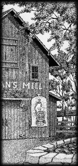 The above art is a pen & ink rendition of the mill in Silver Dollar City. It was created by Joe Benjamin, an extremely talented craftsman. More can be read about Joe (here) the editor