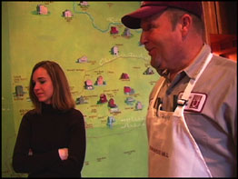 | Above, Elizabeth Andrews, public relations, and Jim Edwards, miller, discuss the mill. The map noting historic mills are behind. Photo credit: J. Heston. 1/10/08. | ||||||||||||||||||||||||||||||