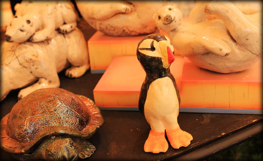 | SABRINA WAUN POTTER Sabrina Waun, an Alaska native, creates unique, quirky art in her backyard studio in Branson, Missouri. Each piece is individually scuplted, hand-built or wheel thrown. No molds are made and no two pieces are ever quite alike. Each piece is fired in an alectric kiln, then glazed and fired again in an electric or propane raku kiln. An avid hiker, scuba diver, former competitive snowboarder, firefighter and medic, Wauns art is inspired by nature as evidence by the collection of swans, bears, turtles, and even a number of fun puffins on display. Waun also works with fused and carved glass and has recently begun experimentation with combination of art forms and ceramics. When not working on her art, Waun spends her time with her son, husband and a menagerie of pets. Beautiful art made from earth itself is a special thing. To also make it a functional part of our lives? That would make it pottery. The craftsmanship of the potter is hardly native to the Ozarks, as is clear from the quote from Isaiah (at right). However, there is something about the process that, like basket weaving, brings us back to the basics. And brings us back home. But now, O Lord, thou are our father; we are the clay; and thou our potter; and we all are the work of thy hand. Isaiah 64:8 CHRISTINA LORENZEN POTTER Made of Clay potter and sculptor Christina Duncan Lorenzen has been an artist since she was a child. She began her family-owned business, titled Mother Earth Pottery in 1991 in Lincoln, Nebraska, and then near Branson, Missouri, for 10 years until moving to Joplin. There Lorenzen taught elementary art in her hometown for four and a half years before returning to her first love, making pottery. The act of creating art is as important to me as singing and giving encouragement and blessing to others. Lately, I like sculpting faces into my pots giving them personality. I love it when my art makes people smile or laugh. My functional pots also create a sense of accomplishment for my customers benefit. My expectation is that they will use the pottery and let it decorate their world. Made of Clay is located in Joplin. |