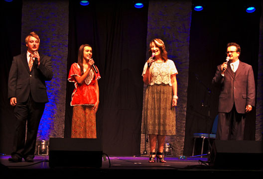 ![]() (PLATE 1) My family and me singing at the showcase on Saturday. LAST DAY OF NQC 2011 w/ Emma Carter It's the last day! NQC 2011 has come to an end way too quickly. Saturday afternoon we sang in another showcase. It was very different than the regular showcases during the week. There were only 20 groups chosen to sing and after each group sang their song, there were three judges that critiqued us on our song and stage presence. If you ask me it was very nerve-racking, but a great learning experience at the same time. The judges were three of the industrys most respected vocal and production specialists. We got really good feedback from the judges, they said really nice things about our performance. I really enjoyed the experience, and I hope we get to do it again next year. The rest of the day was pretty simple. ![]() (PLATE 2) (from left): Reba Rambo McGuire, Donnie McGuire & Destiny McGuire. ![]() (PLATE 3) Reba Rambo. Something unique they did this year was to bring some of the oldest family names back to the main stage. Throughout the week there were some legendary singers on the main stage. The Hinsons, and the Rambos were two of them. On Saturday night my good friend, Anna Grace Kimbrough (of High Road) got to play the violin with The Rambos on main stage! How cool! They sang several of Dottie Rambos hit songs. Mr. Buck Rambo was there too. They did an amazing job, and so did Anna Grace. It was so awesome to see her up there playing. ![]() (PLATE 4) Buck Rambo. ![]() (PLATE 5) Anna Grace! I personally felt like a proud baby sister. The last day of NQC is usually very bittersweet for me. I'm always sad to leave, but ready to head back home. Not this year! I got really sad when we left this time. I made so many awesome friends, but I waited a little late to make them. It was Saturday, the last day, before I decided to hang out with friends! How silly is that? I guess you could say I'm a little bit shy. I was very sure to cherish the moments I had left with my friends. Lots of hugs and goodbyes filled the evening. I can't wait till next time! By Emma Carter _____ National Quartet Convention w/ Emma Carter photo plates All photo credits: Emma Carter. Location: Louisville, Kentucky SEPTEMBER 17, 2011 |