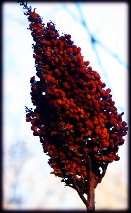 | Sumac. The sumac is native to the Ozarks and the species thrives on dry, compacted soil, making the groves a common sight along roadsides. Native to North America, Rhus typhina produce clusters of red berries traditionally used to make a late-summer drink (Plate 3). Various portions of the plant were believed to hold medicinal qualities as well. Rhus typhina is a short-lived tree species, small in stature with a light, pithy wood structure more closely resembling that of an herbaceous perennial than most trees (Plate 4). In fact, the sumac tree is in the same family as poison ivy. It is the leaves of the sumac, however, that attract the most attention. Early in September, sumac turns a most brilliant crimson (Plate 1). by Joshua Heston May 28, 2009 ________ Sumac (Rhus typhina) Size: 10 to 20 feet tall; leaves 16 to 24 inches long. What to look for: leaves compound, with narrowly lance-shaped, sharply toothed leaflets; leafstalk hairy, twigs covered with velvety hairs; ense clusters of dark red, hairy seeds. Habitat: old fields, borders of woodlands. page 320, Wernett, Susan J., et al. North American Wildlife. The Reader's Digest Association, Inc., 1986. _______ FROM THE HERBAL COMPENDIUM... Sumach. Rhus glabra. Upland Sumach. Smooth Sumach. Pennsylvania Sumach. Root: Tonic. Astringent. Antiseptic Berries: Astringent. Refrigerant. Diuretic. Leaves: Tonic. Astringent. Antiseptic. Diuretic.. Valuable in gonorrhea, leukorrhea, diarrhea, hectic fever, and scrofula. The berries are used in diabetes, bowel complaints, febrile diseases, canker, and sore mouth. page 179, Shaker Medicinal Herbs: A Compendium of History, Lore and Uses by Amy Bess Miller _____ A word of safety: folk remedies on StateoftheOzarks are published for informational purposes only. These remedies are never intended to cure, treat or mitigate any disease or disease condition. For questions about disease or disease conditions, consult a qualified healthcare professional. |
