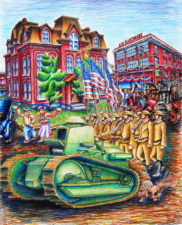 ![“This axe is a failed project. It wouldn’t have failed if I hadn’t hardened the edge so hard. I was doing a Norse style technique for making the axe head. This is a lawnmower blade that I wrapped around. This is a file that I inserted into it. I couldn’t get a good forge weld so I tried doing what I lot of them did where you actually drilled through it and sink pins [into it]. But I ruined a drill bit or two trying to drill through the file. So I eventually just took my drifting tool and punched holes through it when it was hot and stuck nails through and then I welded it. And this last time I hardened it I immediately went to go test it and realized it was too hard when I chopped into a log or two and the edge chipped off.”](https://stateoftheozarks.net/showcase/wp-content/uploads/2018/01/IMG_8865-625x417.jpg)