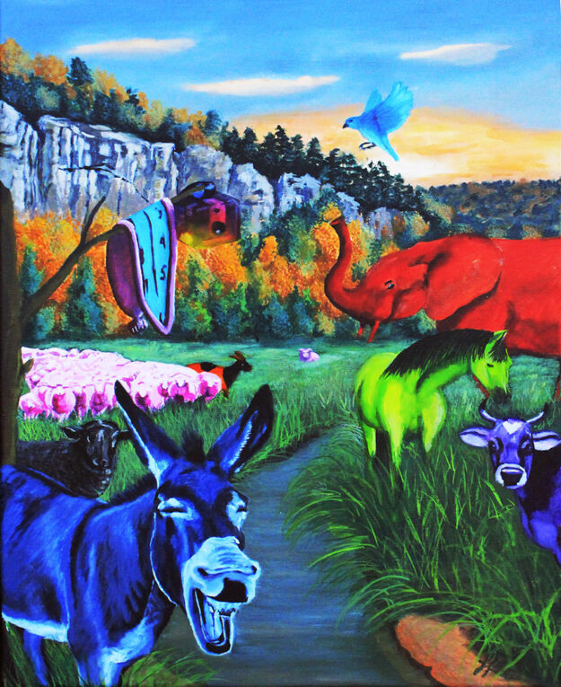 A Thoughtful Drive by Cindy Thomas with artwork by Brent Holland Writers Artists Night 2021 Leaving U.S. Highway 65 at Leslie, Arkansas, Highway 66 meanders through the Ozark hills toward Mountain View. It winds past communities whose dominant—or only—feature is a gas station or tiny post office, alongside the occasional country church. Gently sloping from…